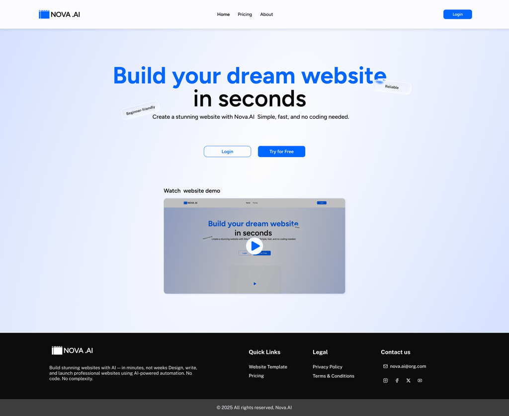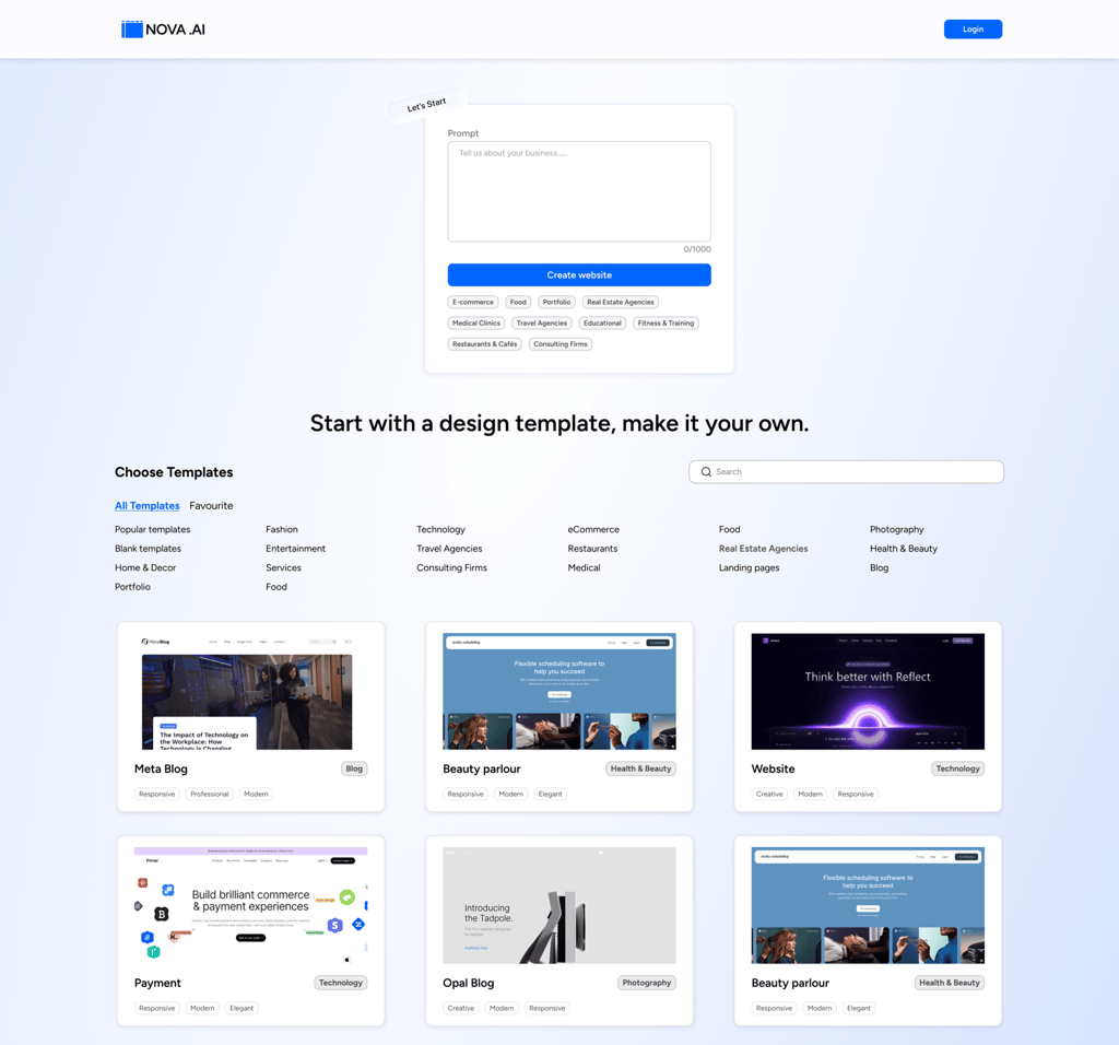 Nova.ai is an AI-powered website builder designed to help small business owners and non-designers create professional websites easily. The main idea behind Nova.ai is simple: