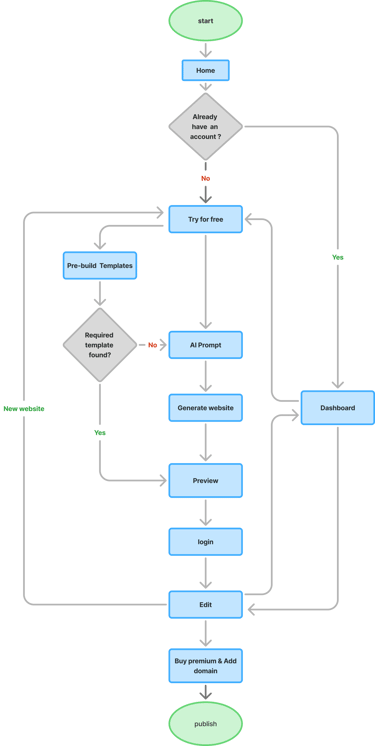 Because of this, users do not understand the process, feel uncertain about the outcome, and often leave before completing or publishing their website.